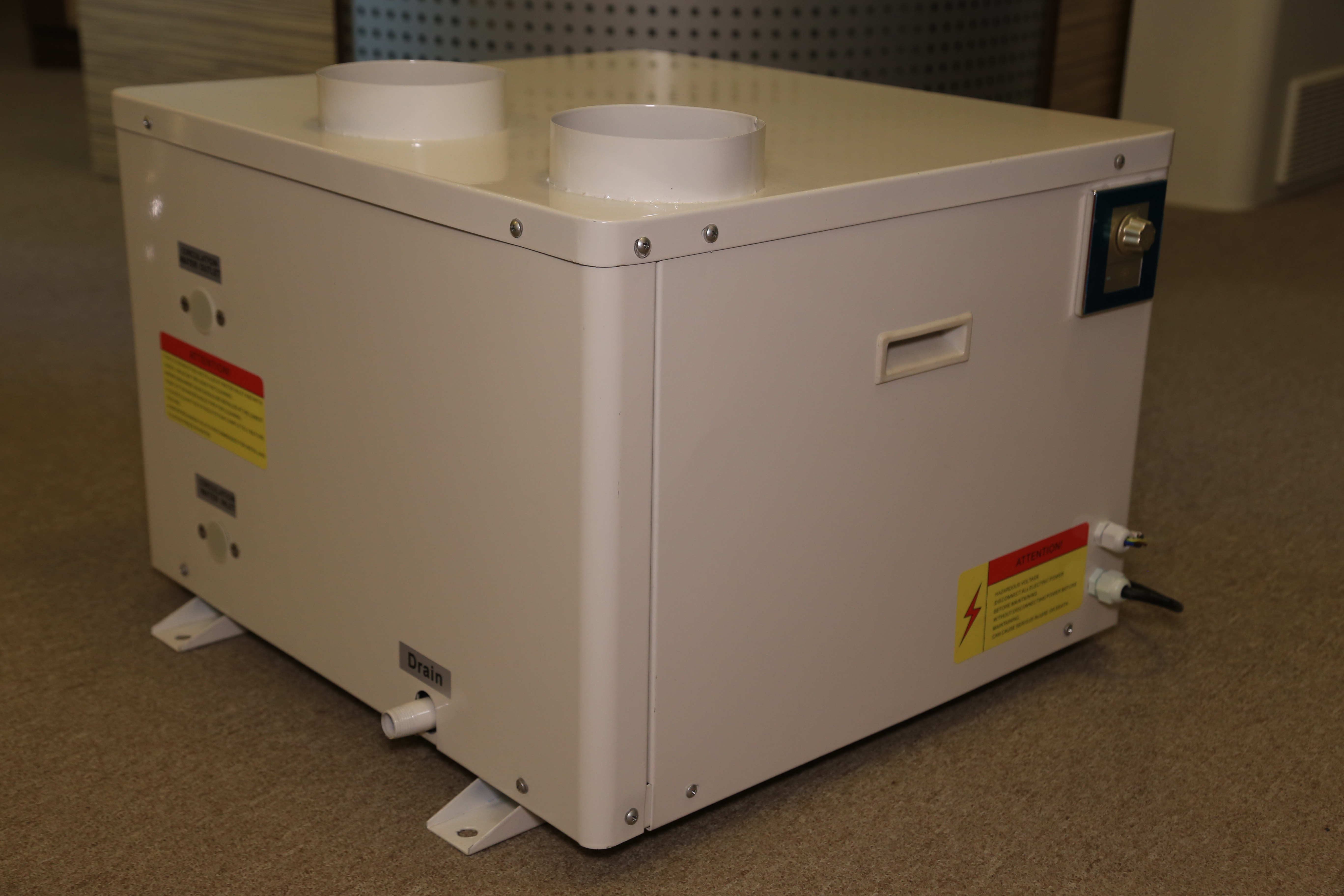 Теплові насоси повітря-вода Mycond серії Ventheat — це рішення, яке оптимально заміняє вентиляційне устаткування з рекуперацією тепла. Цей тепловий насос ефективно утилізує тепло. Обладнання може нагрівати воду до +55°C. При цьому агрегат працює із рівнем шуму не більше 50 дБ (А). Вентилятор теплового насосу має 3 швидкості обертання.