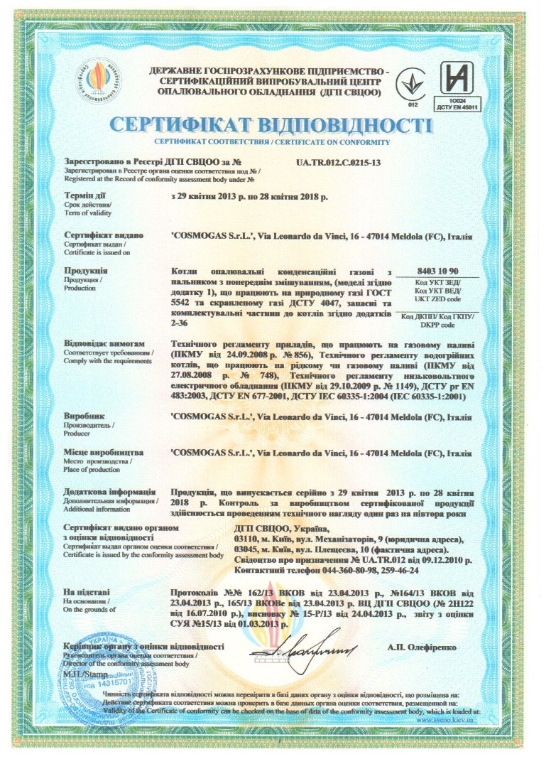 Сертифікат відповідності UA.TR.012.C.0215-13