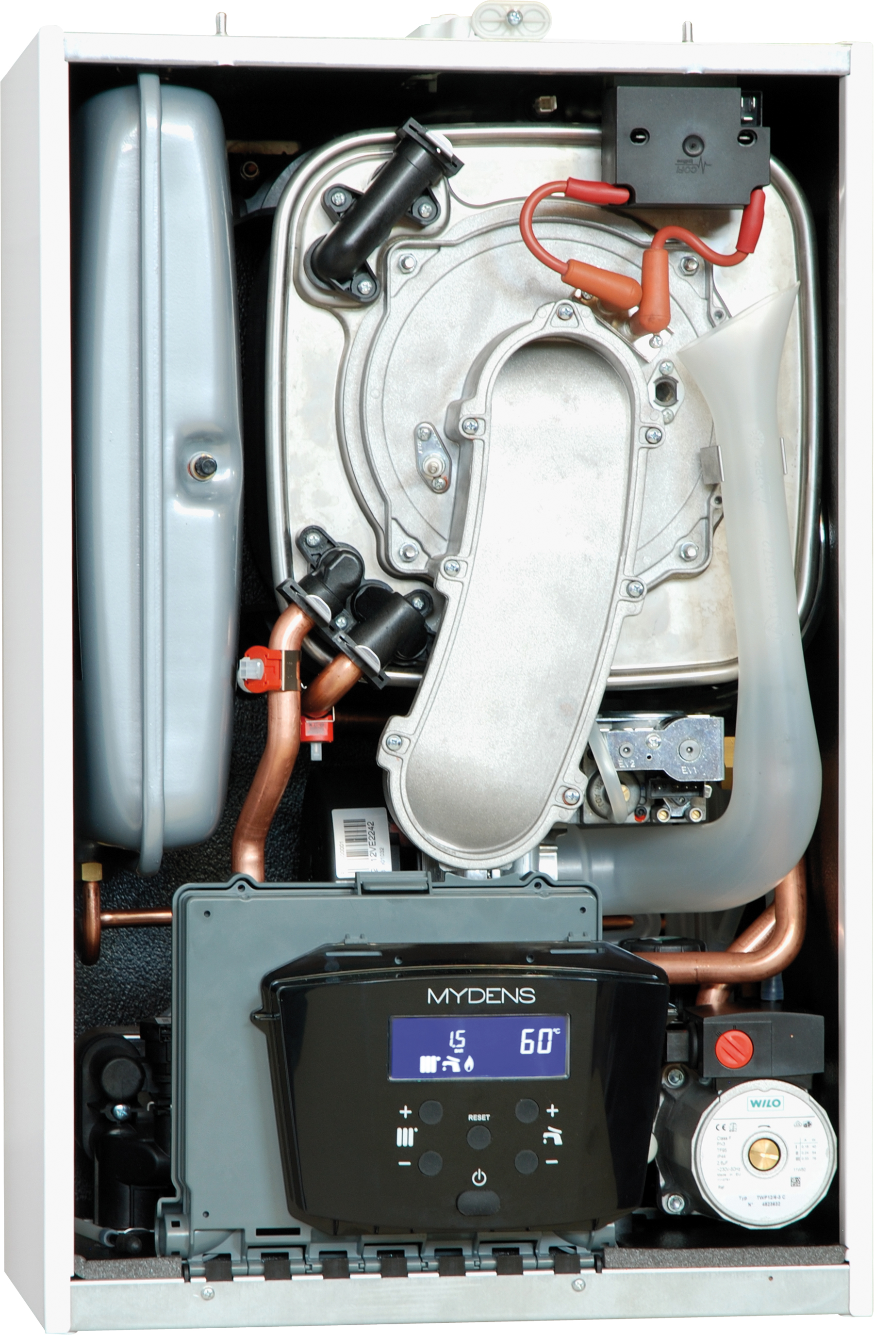 Mydens — екологічний котел конденсаційного типу з вторинним теплообмінником збільшеної площі та потужністю від 15 до 60 кВт.