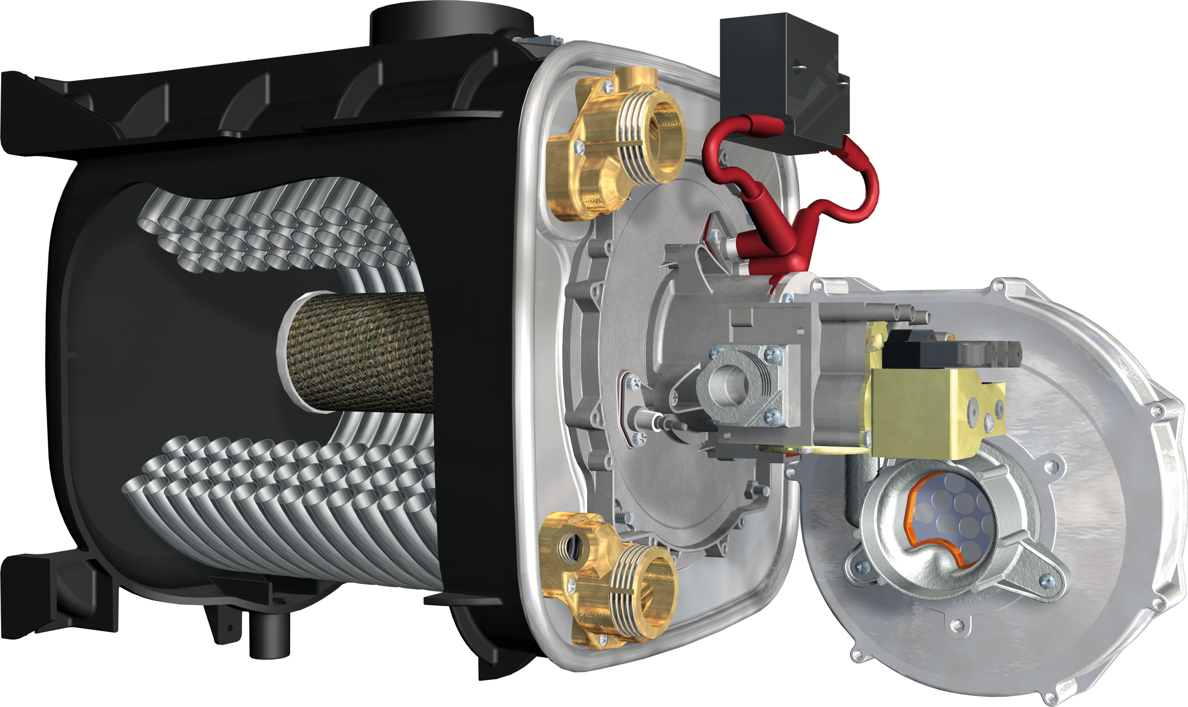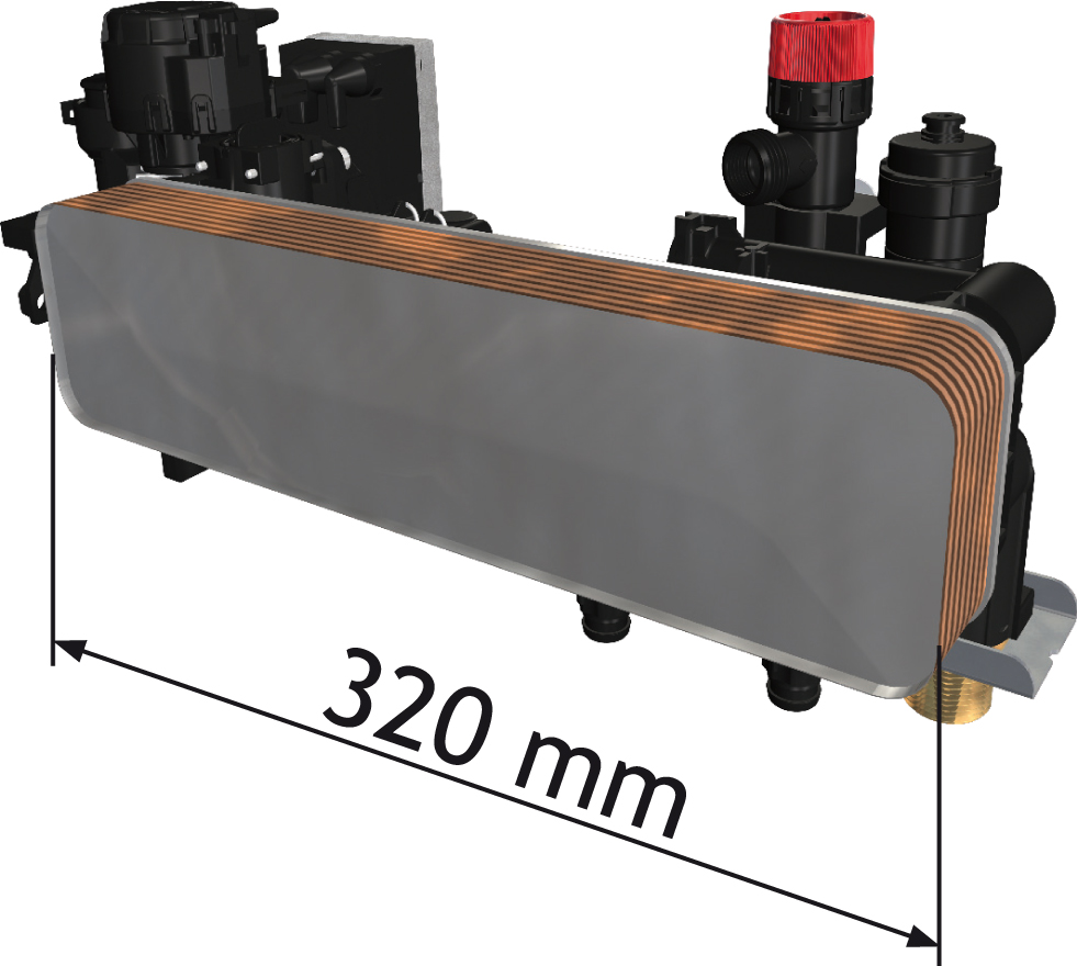 Новий запатентований первинний теплообмінник CRV виконаний без застосування зварювання, з низькими тепловими втратами. Теплообмінник виконаний із нержавіючої сталі AISI 316Ti, стабілізованої титаном. Завдяки цьому збільшилися строк служби, міцність, надійність, і степінь захисту від корозії.